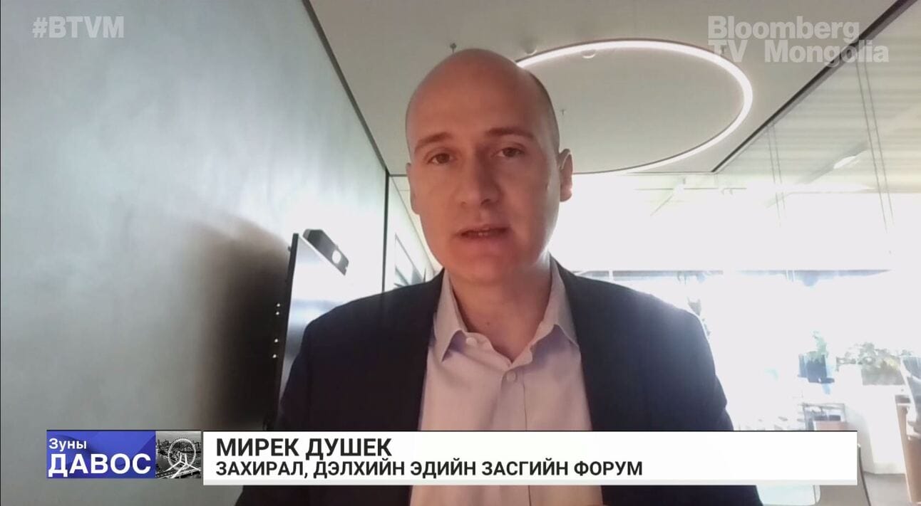 “Хөгжиж буй орнуудын хувьд хувьсан өөрчлөгдөж буй эдийн засгийн нөхцөл байдалд тааруулан дасан зохицох нь чухал юм. Худалдааны урсгалын чиглэлд гео-эдийн засагт ихээхэн өөрчлөлт гарч байгаа нь манай хэлэлцүүлгийн нэг хэсэг болно. Дэлхийн эдийн засгийн тогтолцоо өөрчлөгдөж буй нь хөгжиж буй орнуудад хүчтэй нөлөөлнө. Илүү тодорхой хэлбэл бид "Зуны Давос"-оор худалдааны асуудлыг онцлон авч үзнэ. Түүнчлэн уулзалтын үр дүнг нэгтгэсэн тайлан хөгжиж буй орнуудад төвлөрөхөөр байна" хэмээн Дэлхийн Эдийн Засгийн Форумын захирал Мирек Душек “Bloomberg TV Mongolia”-д ярилцлага өгөхдөө онцлов.