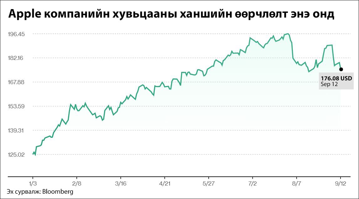 БНХАУ-ын Засгийн газрын агентлагууд, Төрийн өмчит компаниудад “iPhone” гар утасны ашиглалтыг хориглож эхэлсэн нь “Apple”-ийн хилийн чанад дахь хамгийн том зах зээл, үйлдвэрлэлийн гол баазад яггүй сорилт учруулаад байгаа. Шинэ бүтээгдэхүүнүүдийн дийлэнх онцлог өмнө нь мэдээлэгдсэн байсан тул хөрөнгө оруулагчдын хариу үйлдэл тийм ч хүчтэй байсангүй, компанийн хувьцааны ханш мягмар гарагт 1.8 хувиар унаж, 176.21 ам.доллар болжээ.