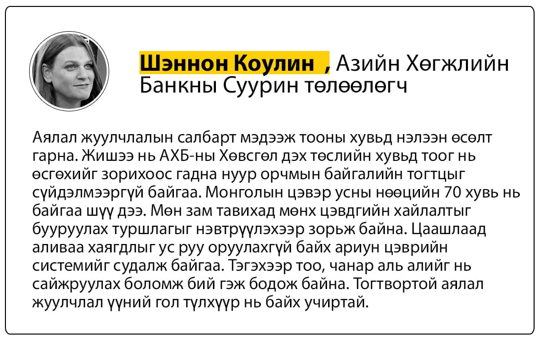 Харин цаашид аливаа “шок”-т хариу үйлдэл сайтай нийгмийн хамгааллын тогтолцоог бүрдүүлэхийн тулд хууль тогтоомж, зохицуулалтад өөрчлөлт оруулах, санхүүжилтийн тогтолцоог сайжруулах, институцийн шаардлагатай үед шуурхай хариу үйлдэл үзүүлэх чадамжийг сайжруулах шаардлагатай гэж АХБ зөвлөсөн байна.