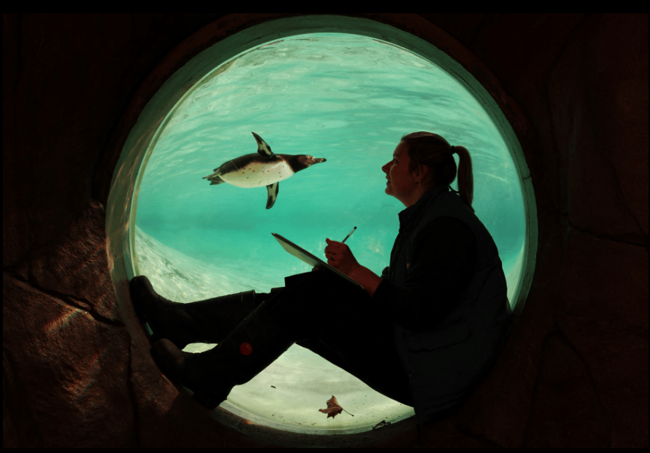 ZSL London амьтны хүрээлэнгийн ажилтан Жессика Фрайер оцон шувууны усан сангийн дэргэд