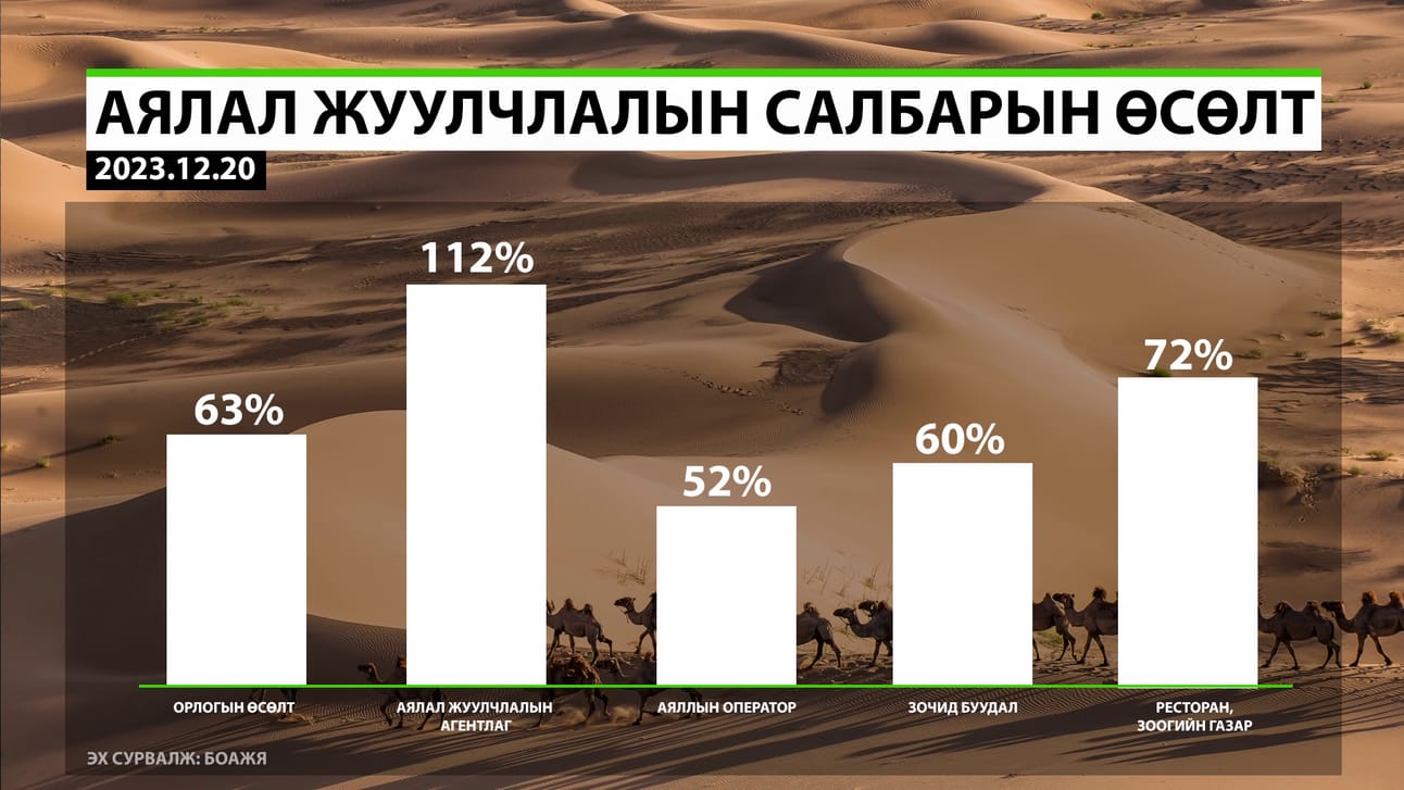 2023 онд Монгол Улс 645 мянга гаруй жуулчин хүлээн авч, салбарын орлого 1.3 тэрбум ам.доллар хүрсэн нь түүхэн дээд үзүүлэлт боллоо. Аялал жуулчлалын тухай хууль шинэчлэгдэн батлагдаж, 2025 он хүртэл 34 улсын иргэдийг визийн шаардлагаас чөлөөлж, хэд хэдэн улс руу шууд нислэгтэй болоод буй. 2024 онд Монголыг зорих жуулчдын тоо бүр ч нэмэгдэх прогноз байгаа ч өсөлтийг тогтвортой хадгалахын тулд тооноос гадна чанарын асуудал яригдана.