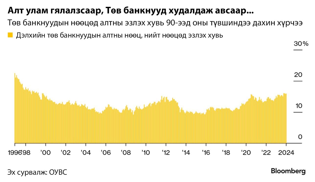 Эдийн засгаа уналтаас зөөлөн газардуулах Холбооны нөөцийн банкны арга хэмжээнээс үүдэж болох эрсдэлд хамгийн сайн хедж нь алт гэж үзсэн худалдан авагчид олон байгаа нь дамжиггүй. Гэхдээ хэдэн арван жилийн турш алтыг төдийлөн ойшоогоогүй ч саяхнаас эрчимтэй нөөцөлж эхэлсэн өөр нэг бүлэг худалдан авагчид байгаа нь Төв банкнууд юм.