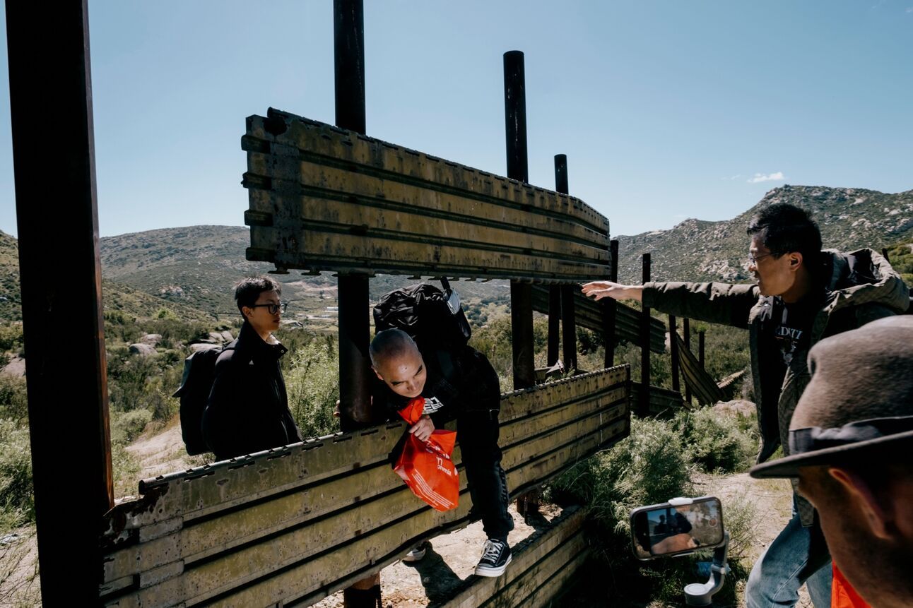 АНУ-Мексикийн хилийн зурвасын хашлагыг давж буй цагаачид - Кампо, Калифорни