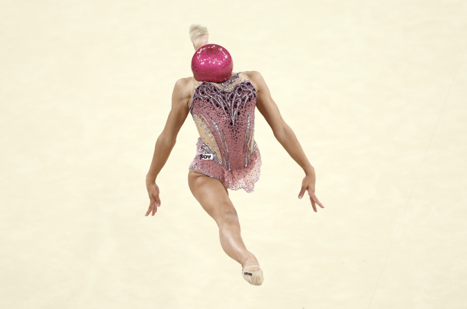 Италийн тамирчин Софиа Рафаэли Олимпын наадмын уран сайхны гимнастикийн ганцаарчилсан төрөлд эхний шатны үзүүлбэрээ үзүүлж буй нь