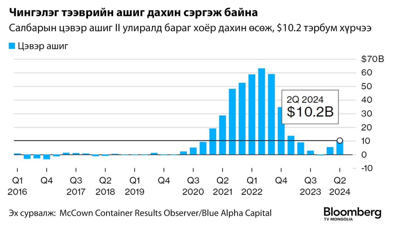 Хоёрдугаар улиралд дэлхийн чингэлэг тээвэрлэлтийн биет хэмжээ дээд үзүүлэлтээ эвдэж, салбарын ашиг бараг хоёр дахин нэмэгдсэнээр 10 тэрбум гаруй ам.доллар хүрсэн байна. Ашиг цаашид мөн эрчимтэй өсөх төлөвтэй гэж салбарын ахмад мэргэжилтэн Жон Маккаун онцолж байсан юм.