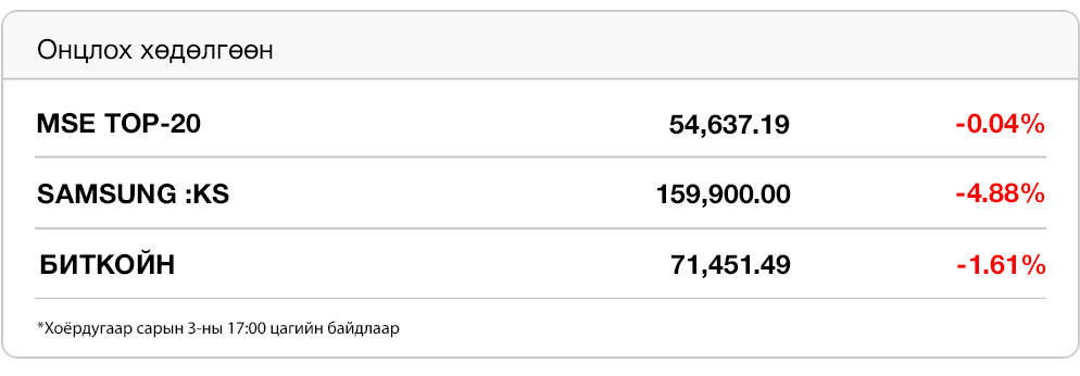 Өглөөний мэнд. Монголын Хөрөнгийн Бирж ХК нээлттэй болсноос хойших хамгийн өндөр ашигтай улирлаа үджээ. Хуучин цагны үнийн буурах мөчлөг дуусаж, боломжийн үнээр Rolex авахад хамгийн тохиромжтой үе иржээ. Хиймэл оюунтай холбоотой болгоомжлол технологийн зах зээлийн үнэлгээнээс 1 их наяд ам.долларыг арчаад байна.