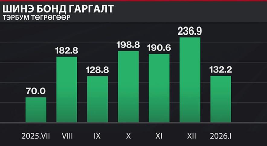 Он гарсаар биржийн бус зах зээл дэх бонд гаргалт эрчимжиж, эхний сард хаалттай зах зээлд 132.2 тэрбум төгрөгийн бонд гарсан нь өнгөрсөн оныхоос 34 хувиар өссөн дүн болж байна.