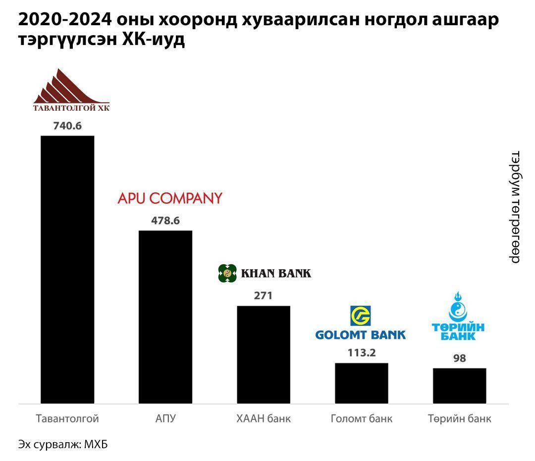 Үүнээс гадна ногдол ашгийн өгөөж болон хэмжээгээр Монголын хөрөнгийн захад тэргүүлэгч Тавантолгой ХК болон Монголын Хөрөнгийн Бирж ХК ногдол ашгийн шийдвэрээ тус тус танилцуулсан. “Орон нутгийн” Тавантолгой ХК 2024 оны цэвэр ашгаасаа нэгж хувьцаанд 6,960 төгрөг тооцон ногдол ашигт хуваарилж байсан бол 2025 оныхоос 3,138 төгрөг тооцон хуваарилахаар болсон байна.