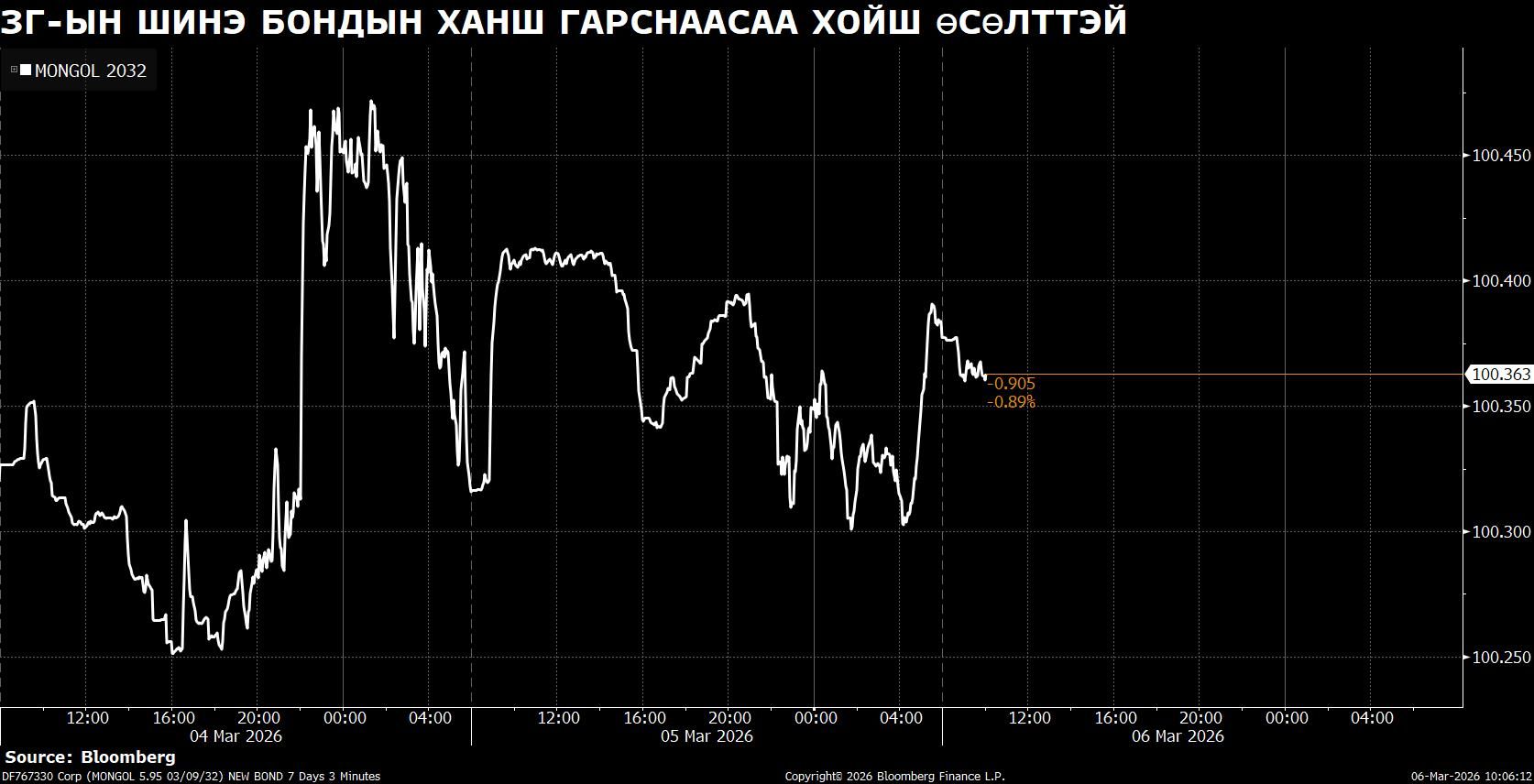 Монгол Улсын Засгийн газраас гуравдугаар сарын 2-ны өдөр шинээр гаргасан олон улсын “Сенчири-5” бондын ханш өсөлтөө хадгалсаар байна.