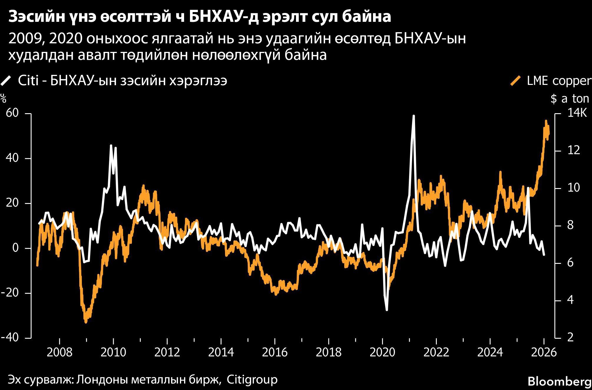 2026 оны эхний хоёр сарын байдлаар экспортод гаргасан алт, нүүрс, зэс болон төмрийн хүдрийн дүн өмнөх оны мөн үеэс 62.9 хувиар өсөж, 2.7 тэрбум ам.долларт хүрчээ. Үүний талаас дээш хувь буюу 1.4 тэрбум ам.долларыг зэсийн баяжмалын экспорт бүрдүүлсэн бол нүүрсний экспорт 1.1 тэрбум ам.доллартой тэнцэж байна.