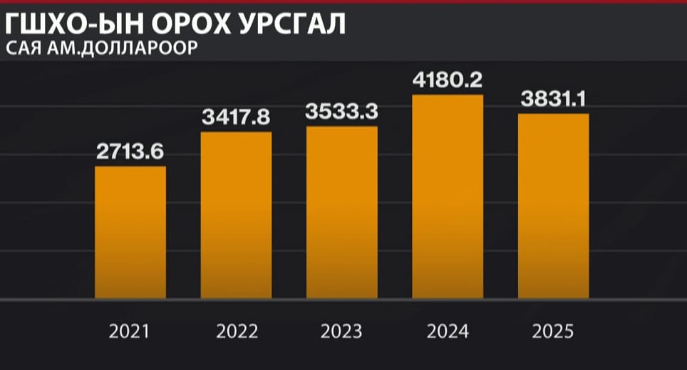 2025 онд гадаадын шууд хөрөнгө оруулалтын орох урсгалын дүн 3.8 тэрбум ам.доллар хүрч, 2021 онтой харьцуулахад 41.2 хувиар буюу 1.1 тэрбум ам.доллароор нэмэгдсэн байна.