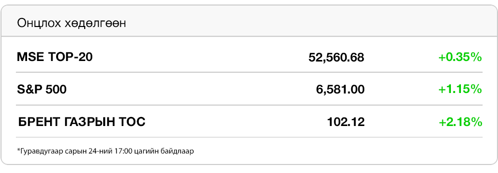 Өглөөний мэнд. Ираны дайн эхэлснээс хойш нүүрсний үнэ эрс өсөж, 2024 оноос хойших дээд түвшинд хүрээд байна. 2025 онд дэлхийн 9500 орчим хотын 14 хувь нь л агаарын чанарын стандарт хангажээ. 2026 оны I улиралд ₮60 тэрбумын ЗГДҮЦ арилжаалагдав.