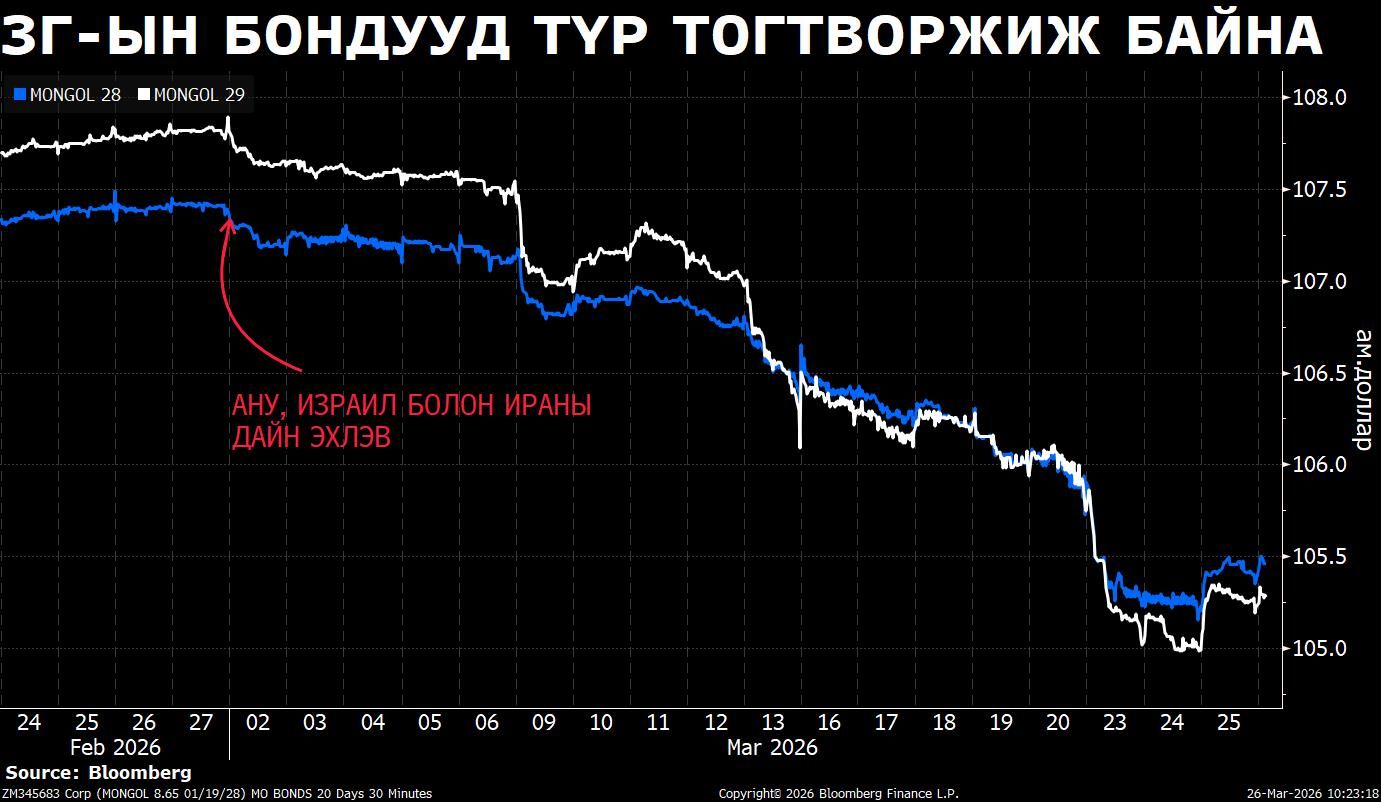 Гуравдугаар сар гарснаас хойш буюу Ойрх Дорнодод дайн эхэлсэн өдрөөс эхлэн бондуудын ханш эрс унаж эхэлсэн юм.