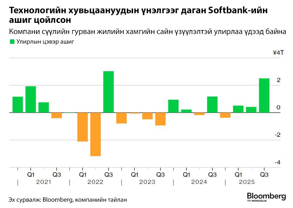 Өглөөний мэнд. Softbank гэнэтийн шийдвэр гаргаж, Nvidia-д эзэмшдэг бүх хувьцаагаа $5.8 тэрбумаар зарлаа. УИХ 2026 оны төсвийг батлаад төд удалгүй тодотгол хийх магадлалтай болов. Намрын улиралд махны үнэ улирлын хандлагаа даган буураагүй нь X сард хүнсний инфляц эрчимжих түлхэц боллоо.