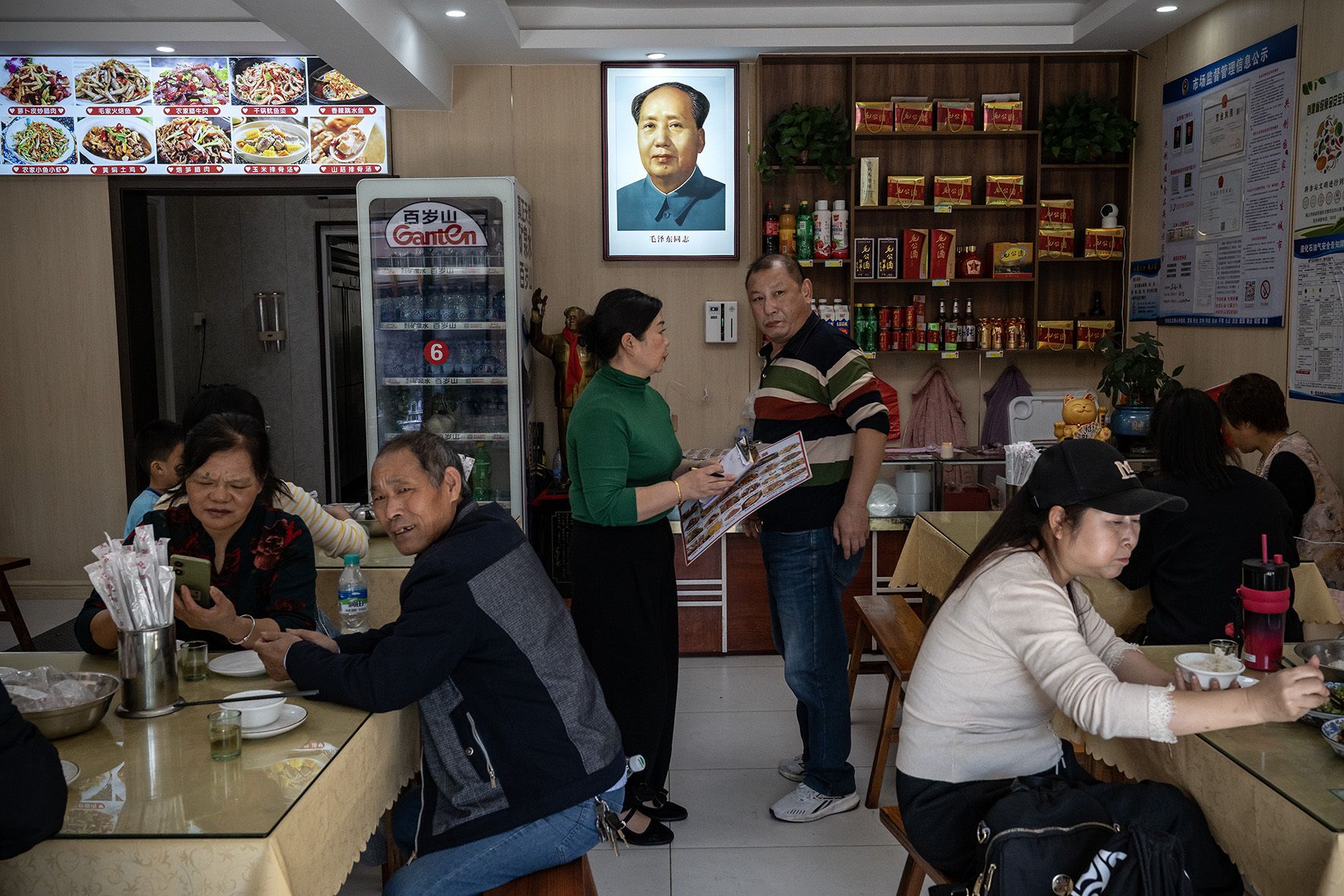 Мао Зэдуний төрсөн хот болох Шаошаньд зочилсон аялагчид цайны газарт - Хунань муж, БНХАУ