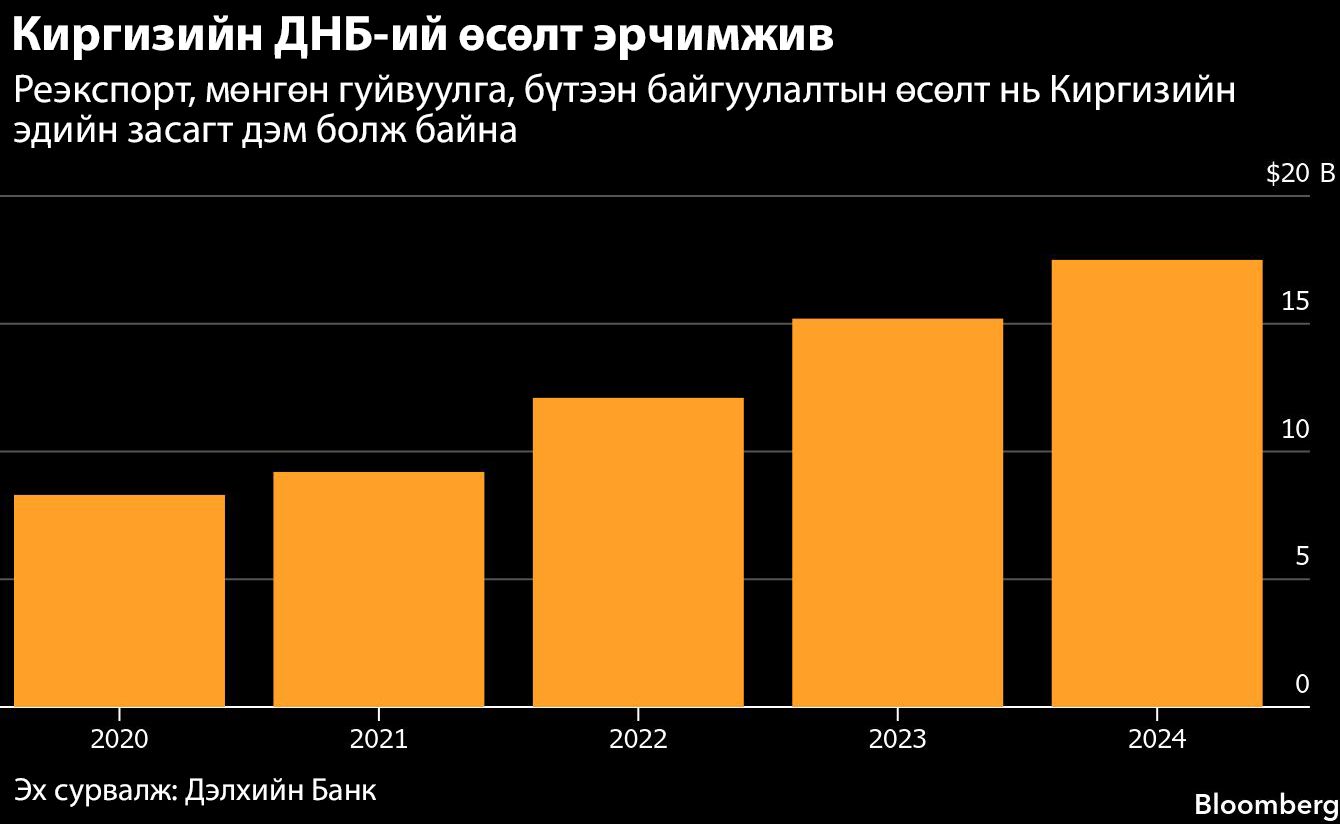 БНХАУ, Казахстаны дунд хавчуулагдсан жижиг Киргиз улс реэкспорт, гадаад гуйвуулга болон аялал жуулчлалын салбарынхаа хурдтай тэлэлтэд дөрөөлөн гадаадын нэн чухал хөрөнгө оруулалт татаж, Төв Азийн бүсийн шинэ “бар” эдийн засагтай улс болох сууриа бэлдэж байна.